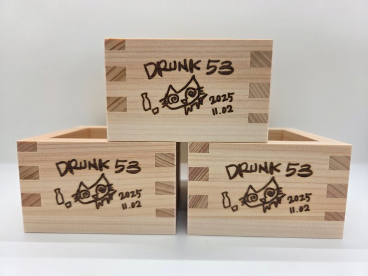 【NEW!!】DRUNK53 酩酊ニャンコ焼き印入りヒノキ祝枡